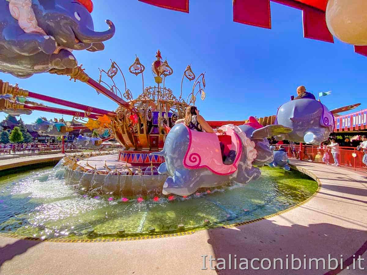 Un grande classico per i più piccoli l’attrazione con gli elefanti che si alzano in volo ispirata al film di animazione Dumbo l’elefante volante.
