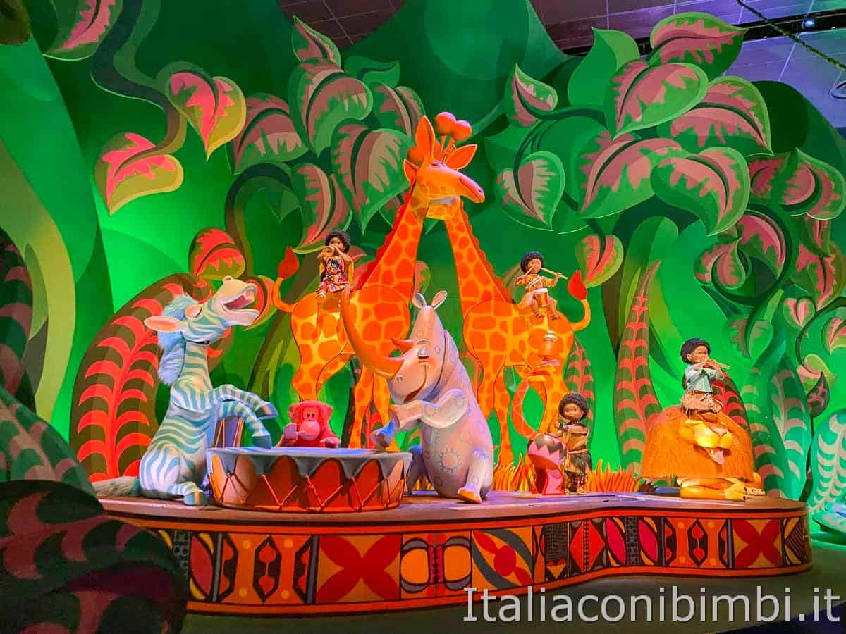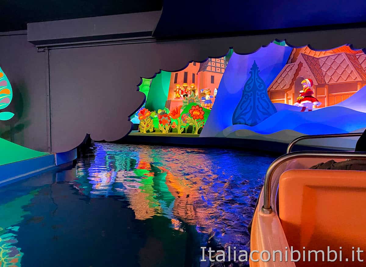 Un piccolo battello vi porterà a fare il giro del mondo in pochi minuti navigando lentamente le acque tranquille di un percorso obbligato: popoli e paesi vengono rappresentati attraverso pupazzi che si muovono e bellissime scenografie, il tutto accompagnato da una dolce musica in sottofondo.