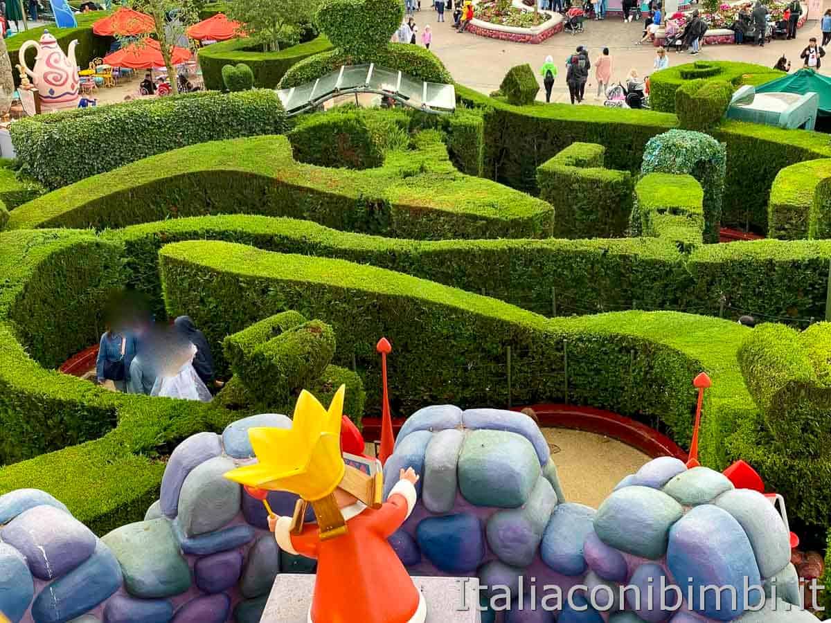 Se vi piacciono i labirinti non perdetevelo, l’ambientazione a tema Alice nel paese delle meraviglie è molto carina, ci sono la tana del Bianconiglio, la foresta di Tulgey, lo Stregatto, la Regina di Cuori e le sue carte soldato. All’ingresso avete la possibilità di fare la foto sotto il cappello del Cappellaio Matto mentre alla fine potete salire sul Castello della Regina da cui si gode una bellissima vista sul Parco Disneyland.