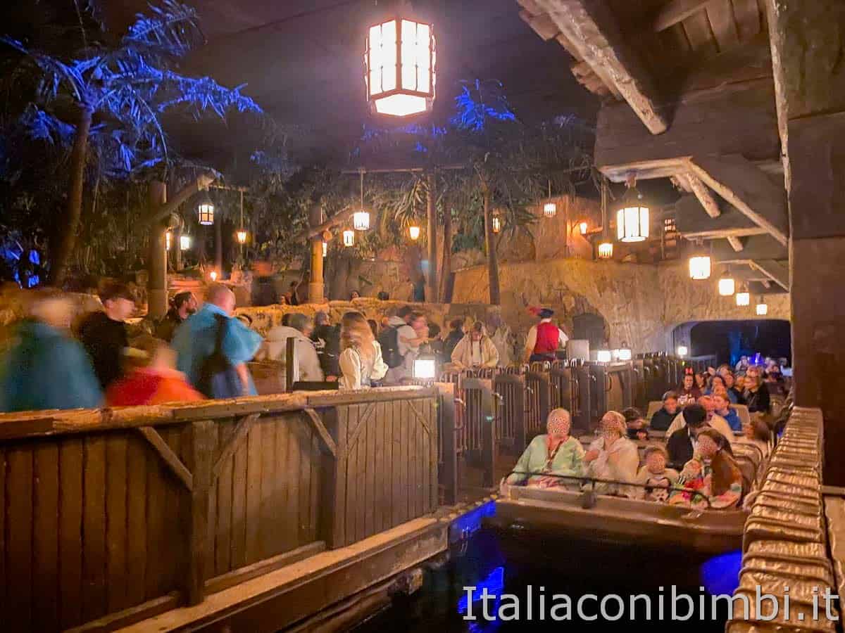 Il buio e la velocità del vascello che in alcuni punti scende verticalmente potrebbe spaventare i bambini più piccoli oltre alla vista di scheletri e zombie. Un pochino ci si bagna perché arrivano spruzzi d’acqua e a volte i sedili delle barche sono bagnati.